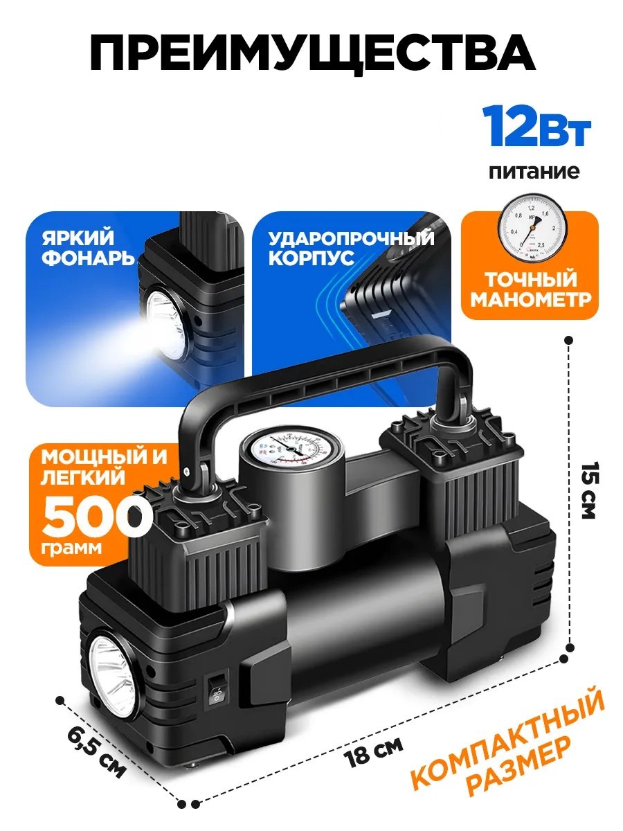 Очень мощный, работает стабильно и уверенно, компактный, есть точный манометр.